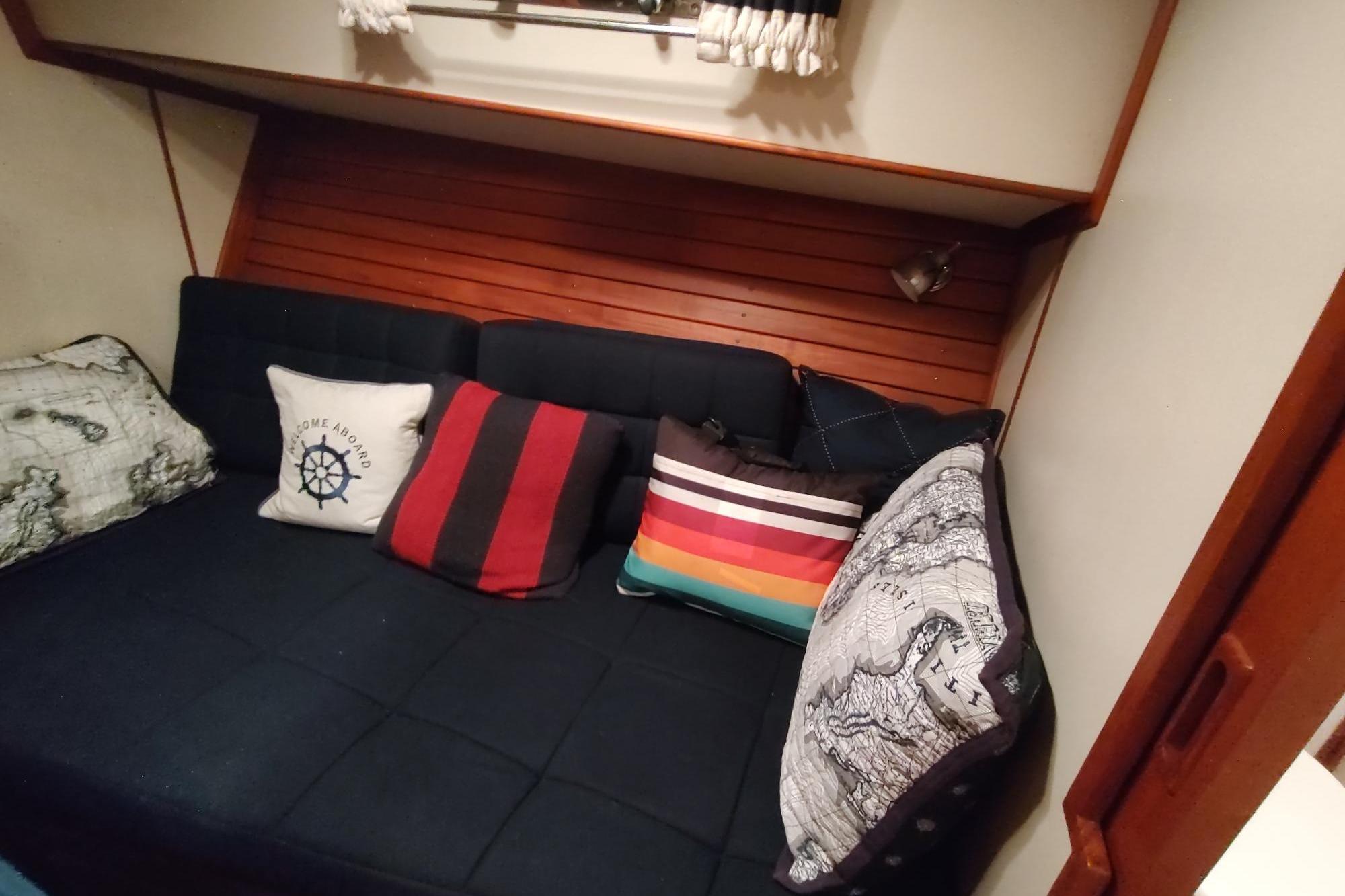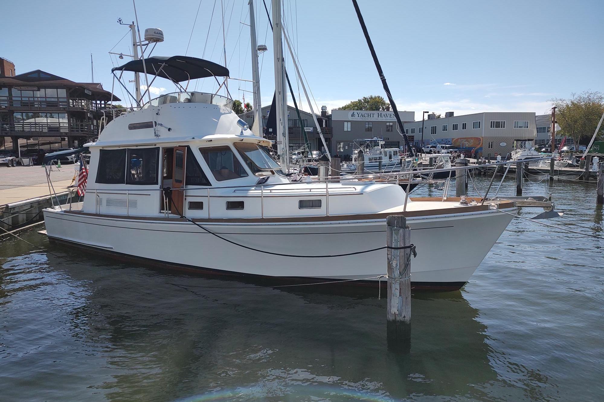 Classic Ray Hunt Grand Banks Eastbay 40 flybridge design with full canvas enclosure. Powered by the ever-reliable Cat 3208 engines, this vessel is ready for her next owner. One of 20 built, the Grand Banks Eastbay 40 is a timeless example of a great design. Perfect coastal cruiser and Great Loop explorer. Two cabins and a wonderful salon offer cruising for the whole family. The galley boasts a full oven and microwave and is very efficient for cooking gourmet meals.